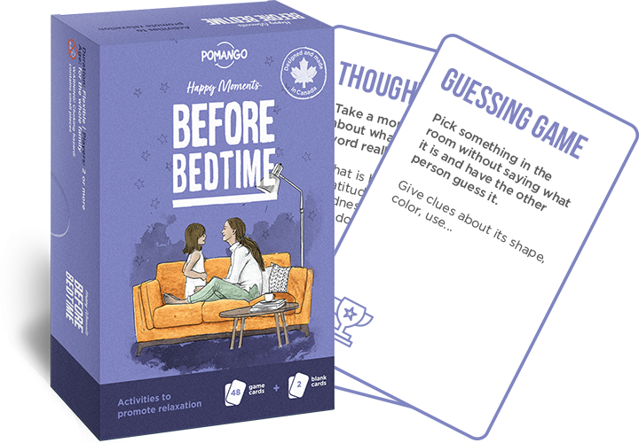 The Happy moments – Before Bedtime game offers 48 simple and fun activities to help children wind down before going to sleep. The whole family will enjoy this gentle mix of games, relaxation, and meaningful discussion.
