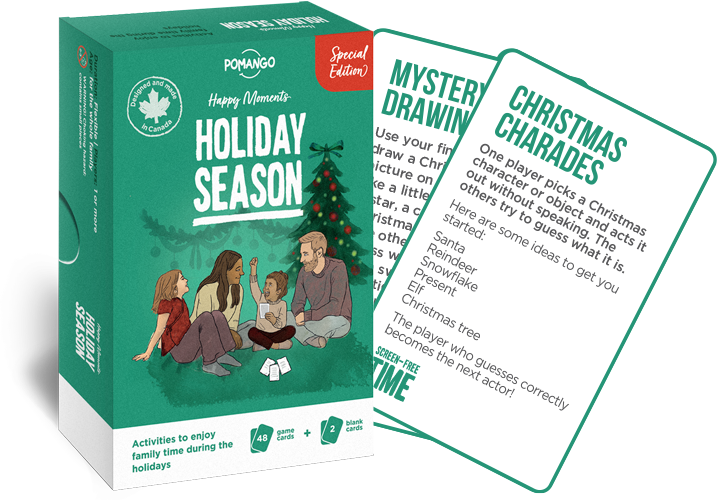 Inspired by the 6 bestselling games loved by thousands of families, this box keeps the winning Pomango formula — reimagined for festive spirits.
