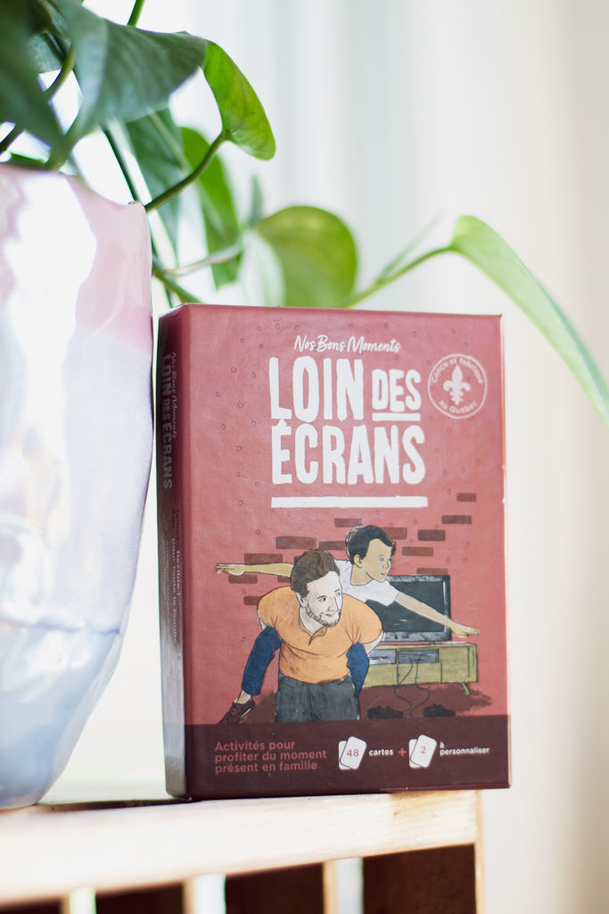 Le jeu Nos Bons Moments-Loin des Écrans offre 48 activités simples à faire à la maison (intérieur et extérieur) pour passer du temps de qualité seul ou en famille, loin des écrans. But du jeu: Pigez une carte qui déterminera l'activité des prochaines minutes/heures. C'est facile!.